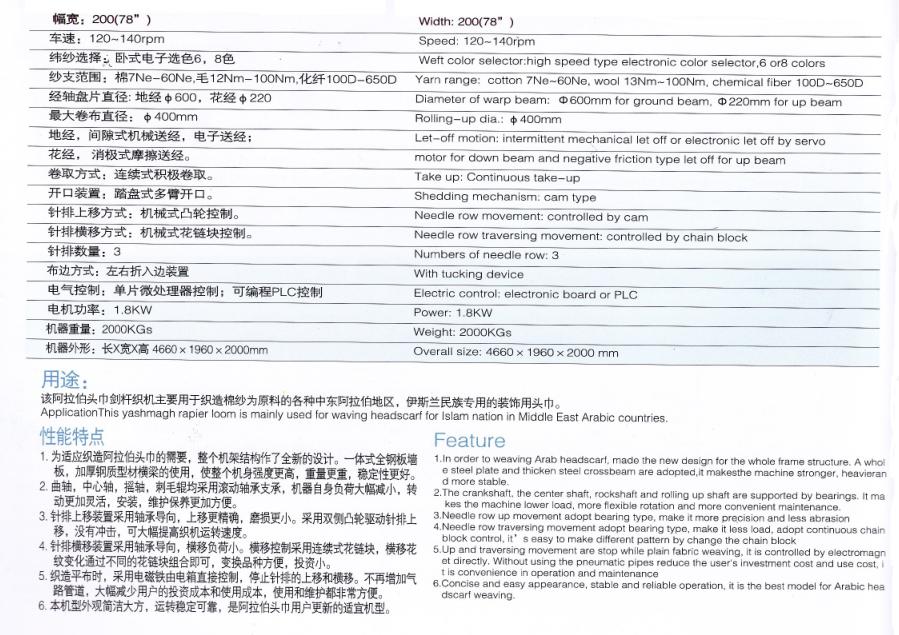 SGD747-TJ型阿拉伯头巾剑杆织机